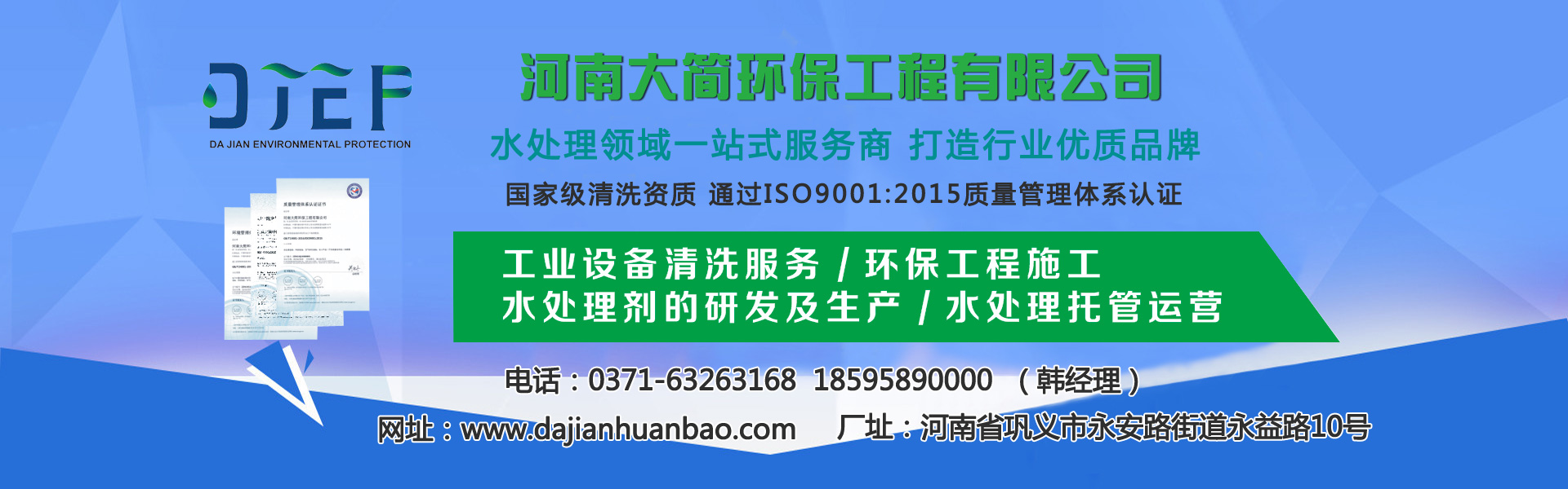 河南大簡(jiǎn)環(huán)保工程有限公司位于河南省鞏義市,是一家專(zhuān)業(yè)從事工業(yè)設(shè)備清洗、化工設(shè)備清洗、鍋爐清洗、管道清洗、化學(xué)清洗、鍋爐除垢劑、設(shè)備清洗劑、水處理藥劑、工業(yè)循環(huán)水處理、空調(diào)清洗、大型空調(diào)水處理技術(shù)產(chǎn)品研發(fā)的科技型綜合性企業(yè)。公司技術(shù)實(shí)力雄厚、清洗門(mén)類(lèi)齊全、裝備水平優(yōu)良、施工經(jīng)驗(yàn)豐富、在工業(yè)清洗服務(wù)領(lǐng)域處于業(yè)內(nèi)地位。業(yè)務(wù)領(lǐng)域具體包括:工業(yè)管道、冷凝器、換熱器、冷卻器、中央空調(diào)、冷卻塔、工業(yè)鍋爐、化學(xué)清洗、高壓射流物理清洗、各種化工設(shè)備清洗,適應(yīng)各種化工設(shè)備,各種水垢、油垢、灰垢、鐵銹的物理清洗;研發(fā)各種工業(yè)清洗劑、緩蝕阻垢劑、水垢清洗劑、金屬清洗劑、水處理劑、冷凝器清洗劑、換熱器清洗劑、金屬清洗劑、冷卻塔清洗劑、粘泥剝離劑、空調(diào)清洗劑、空調(diào)水處理劑、緩蝕阻垢劑、滅藻劑等工業(yè)清洗劑、循環(huán)水處理劑產(chǎn)品,多年來(lái)在全國(guó)客戶(hù)中享有很高的信譽(yù),積累了一批忠誠(chéng)的老客戶(hù)。公司技術(shù)人員多次參與了眾多的化學(xué)清洗、設(shè)備清洗、工業(yè)循環(huán)冷卻水處理工程和空調(diào)清洗水處理工程,有豐富的專(zhuān)業(yè)知識(shí)和實(shí)踐技能,深受用戶(hù)好評(píng)! 查看更多 》大簡(jiǎn)新聞中心